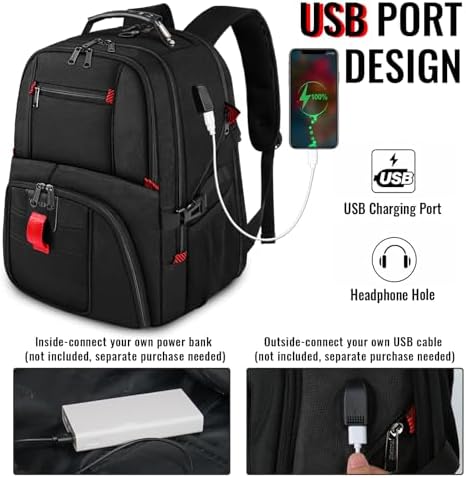 YOREPEK Large Backpack for Men, Extra Large Laptop Backpacks for Men Women, Water Resistant Travel Backpack Airline Approved Business Work Bag with USB Charging Port Fits 17 Inch Computer, Black